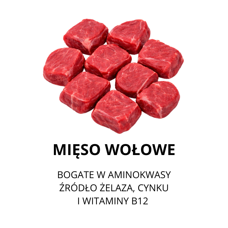 Starannie dobrane składniki dostarczają niezbędnych wartości odżywczych, wspierając zdrowie, energię i dobre samopoczucie Twojego pupila.